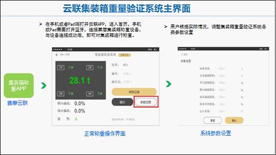 ![]() 托運人如何避免罰款——在集裝箱裝貨時稱重計量! 承運人如何避免罰款——在線監(jiān)測托運人集裝箱重量的驗證過程! 大負載、高精度、輕體量的集裝箱稱重系統(tǒng)是解決這一問題的關(guān)鍵。 賽摩云聯(lián)VGM集裝箱重量驗證系統(tǒng) 賽摩智能公司作為在國內(nèi)擁有28年衡器產(chǎn)品生產(chǎn)經(jīng)驗的上市企業(yè),在對集裝箱的規(guī)格和運輸方式進行了大量的調(diào)研后,開發(fā)了“賽摩云聯(lián)VGM集裝箱重量驗證系統(tǒng)”,解決了不同規(guī)格、不同裝運形式下的集裝箱稱重、計量和數(shù)據(jù)傳輸問題。 ![]() 賽摩云聯(lián)VGM集裝箱重量驗證系統(tǒng)=集裝箱稱重設(shè)備+云聯(lián)重量驗證管理軟件 一、集裝箱稱重設(shè)備三種稱重方式 該系統(tǒng)通過四組稱重模塊分別安置于集裝箱的四角,待集裝箱升起,全部脫離地面或車底板后,分別讀取四個角的重量值,數(shù)值通過無線通信上傳給上位機進行積算,四個值相加即為集裝箱的總重量。 稱重方式1:低位柱叉稱重方式 稱量上限: 40t 計量精度: 小于0.5% 適用環(huán)境:集裝箱放置在地面上進行稱量 這種稱重方式適用于托運企業(yè)在貨物裝箱過程中的時時稱重,通過云聯(lián)重量驗證管理系統(tǒng)軟件,在線監(jiān)控集裝箱裝載重量,提醒企業(yè)裝載貨物是否超載。 ![]() ![]() 稱量上限: 40t 計量精度: 小于0.5% 適用環(huán)境:集裝箱可以在車上進行稱量 這種方式適用于托運企業(yè)直接在車上進行裝箱的稱重計量,也適用于承運企業(yè)對承運的集裝箱進行重量復檢。 稱量上限: 50t 計量精度: 小于0.1% 適用環(huán)境:集裝箱需吊起直接落在稱重設(shè)備上 ![]() ![]() 二、云聯(lián)重量驗證管理系統(tǒng)軟件 云聯(lián)重量驗證管理軟件通過智能邊緣計算器把裝貨重量、集裝箱毛重、集裝箱編號、運輸車牌號等相關(guān)信息經(jīng)4G/5G網(wǎng)絡(luò)發(fā)送到VGM重量驗證管理系統(tǒng)。VGM重量驗證管理系統(tǒng)可以是獨立系統(tǒng)、也可以通過數(shù)據(jù)接口與承運人系統(tǒng)對接 。 ![]() 隨著《中華人民共和國船舶安全監(jiān)督規(guī)則》修改版的正式發(fā)布和處罰力度的增強,無論是托運企業(yè)、承運企業(yè),還是船舶公司,都會加大對集裝箱重量的稱量和核驗工作,傳統(tǒng)的稱量設(shè)備大都無法承受集裝箱大體積、重噸位的稱量需求,賽摩智能公司融合了5G物聯(lián)網(wǎng)技術(shù)的云聯(lián)VGM集裝箱重量驗證系統(tǒng),將成為中國海事局監(jiān)管集裝箱重量失真違法運輸行為的有力武器。!